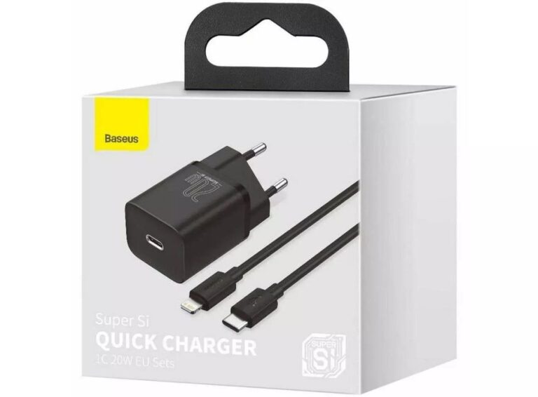 Baseus Super Si Quick Charger with USB-C to Lightning Cable 20W 1 Meter USB-C Black (TZCCSUP-B01)